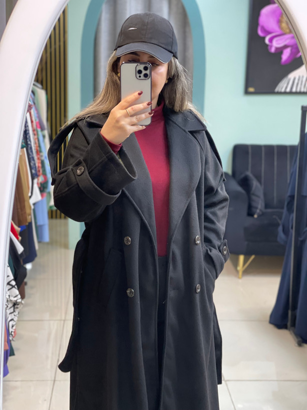 پالتو زنانه فوتر بره‌ای آستردار مدل Winter Belt قد بلند فری‌سایز