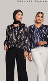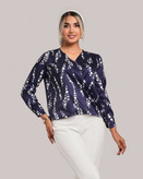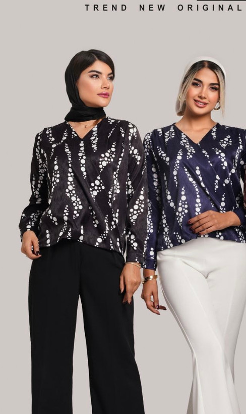 شومیز ساتن ژاکارد یقه چپ وراستی