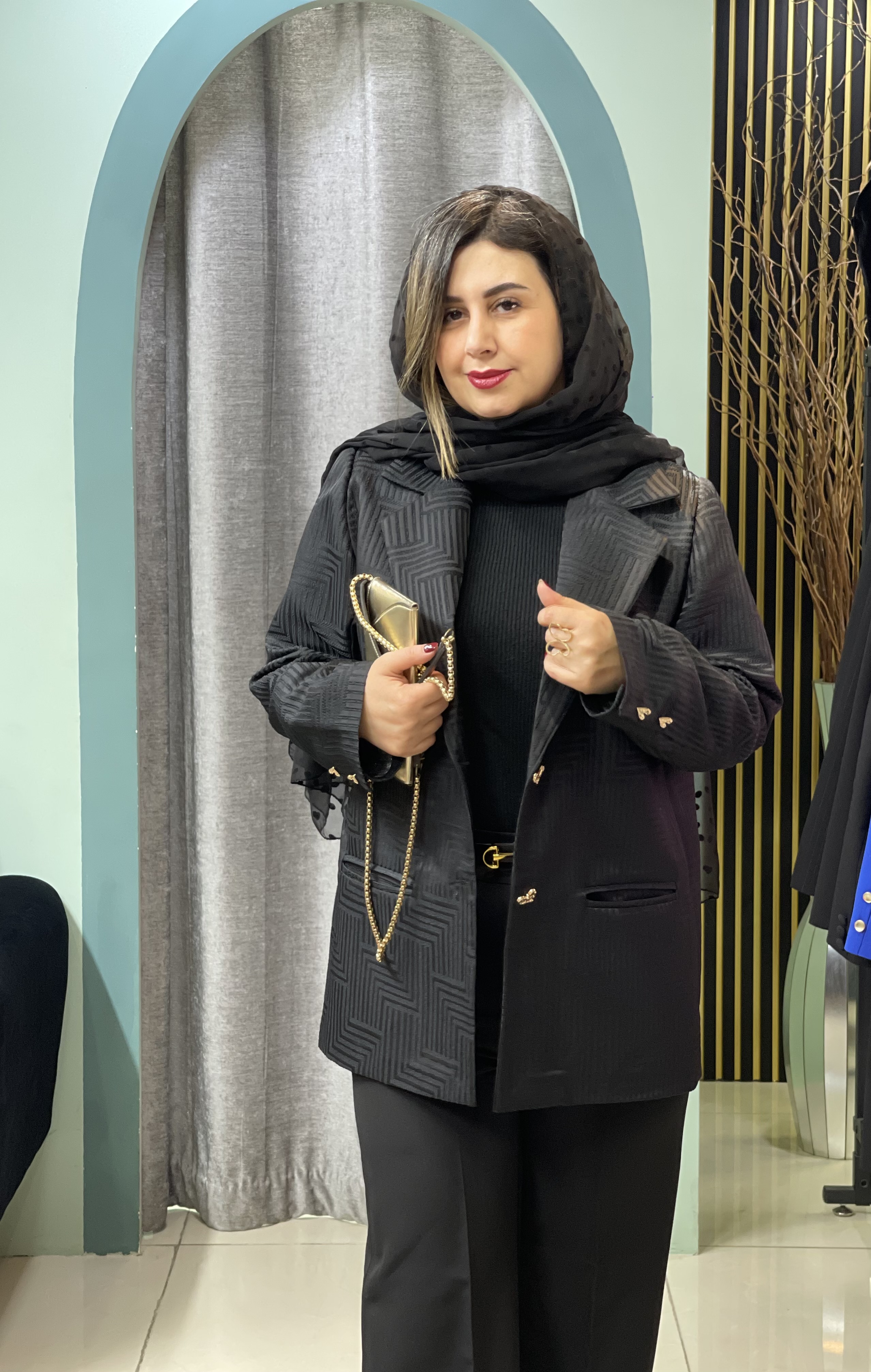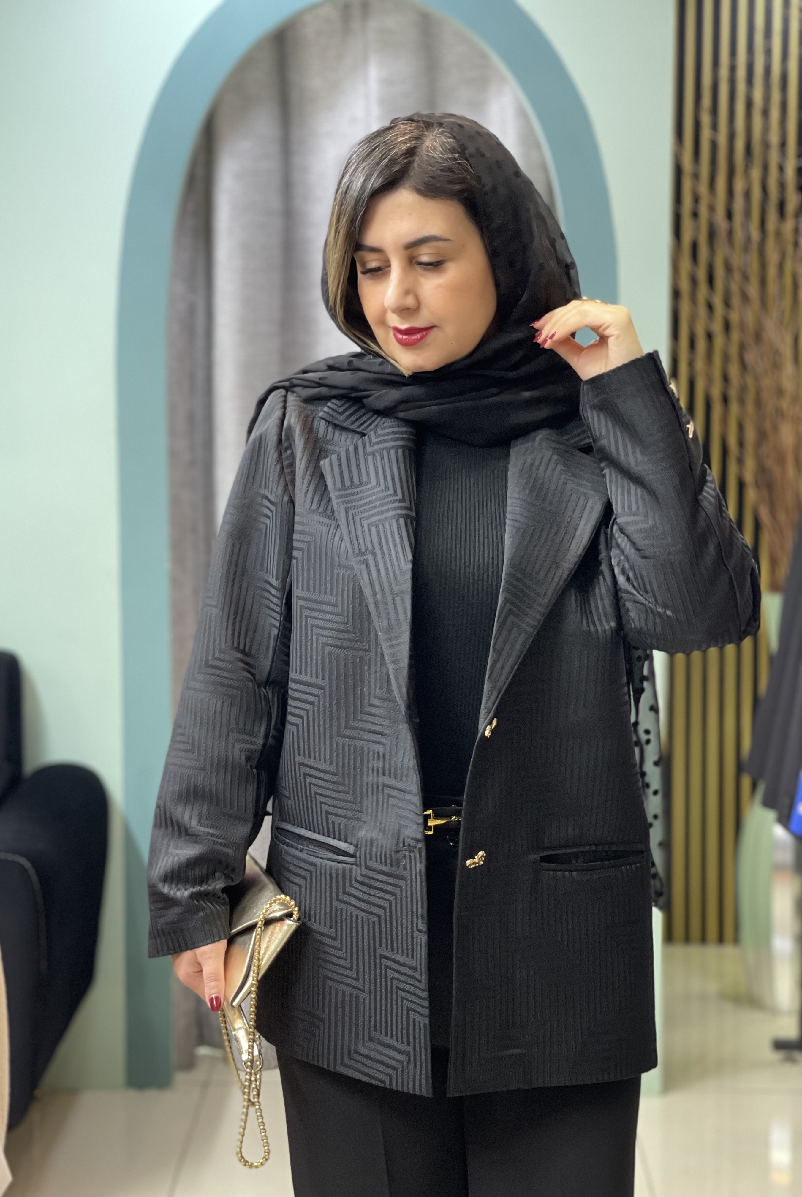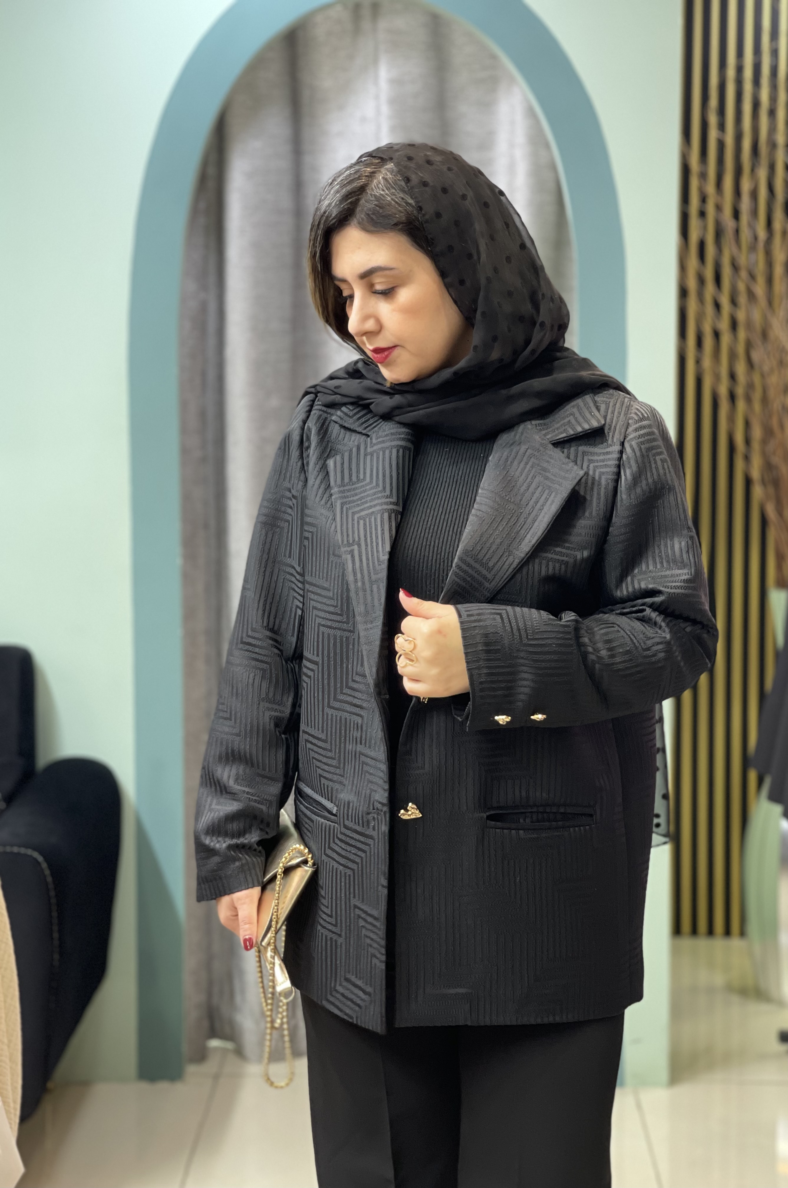 کت مجلسی ژاکارد پیش کار لایه کاری شده کار اپل دارد جلوی کار دوتادکمه قابل بسته شدن دارد سرآستین کار دکمه میخورد یقه انگلیسی دارد قدکت ۷۰ و دور سینه ۱۱۰ سانت است کت رسمی مناسب مراسم وقرارهای مهم