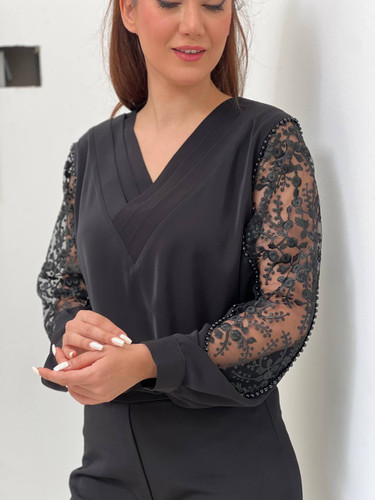 شومیزمجلسی کرپ الیزه با ترکیب گیپور ومروارید